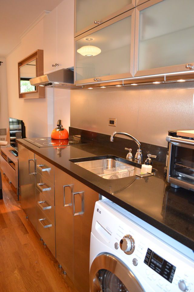 The bathroom is unique and fully fitted to a high standard. There is ample storage space throughout the whole apartment.